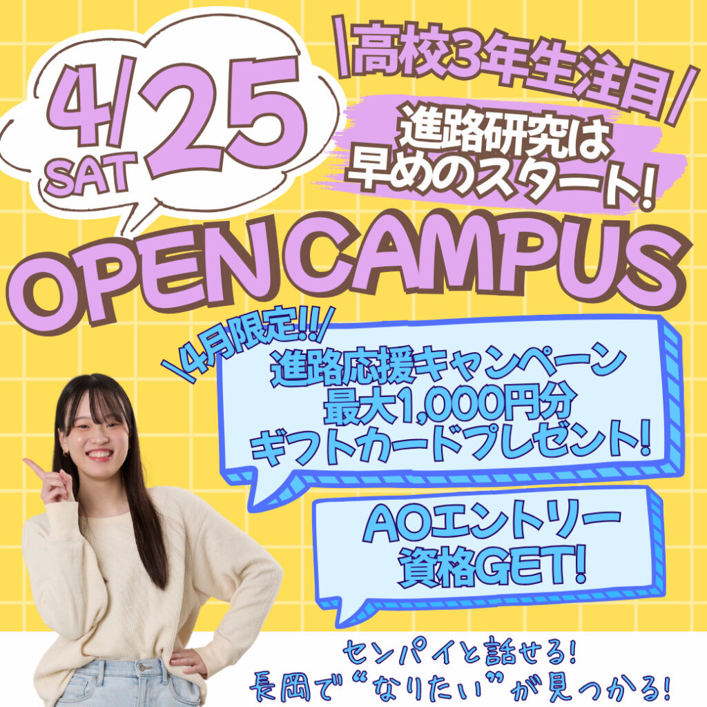 次回オープンキャンパスは3/21(土)、28(土)!