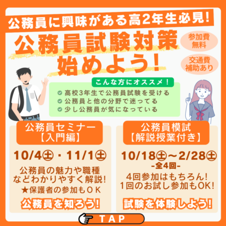 ➡NJCが開催している公務員セミナーや公務員模試、オープンキャンパスに参加してみよう!