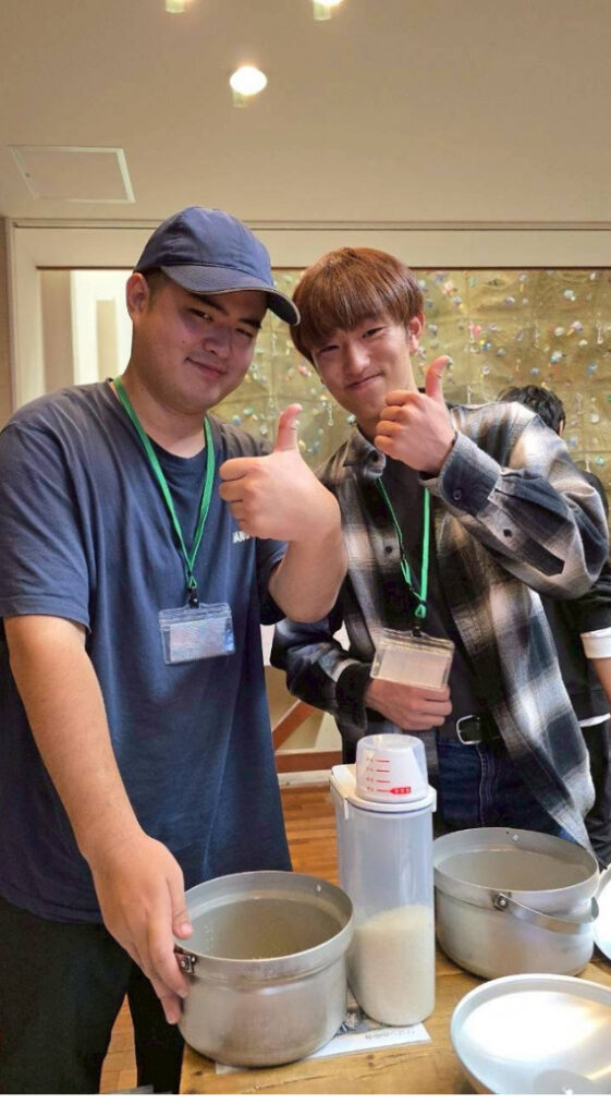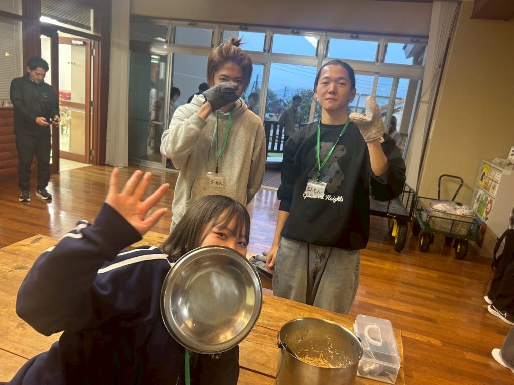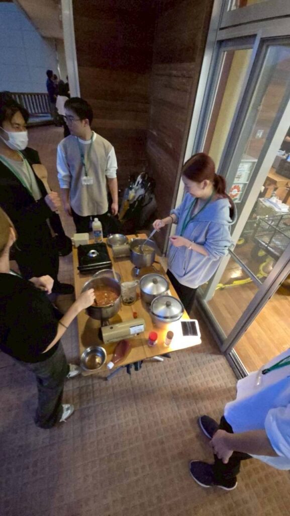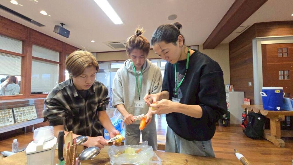 1日目は雨だったので、屋内で調理を行いました!