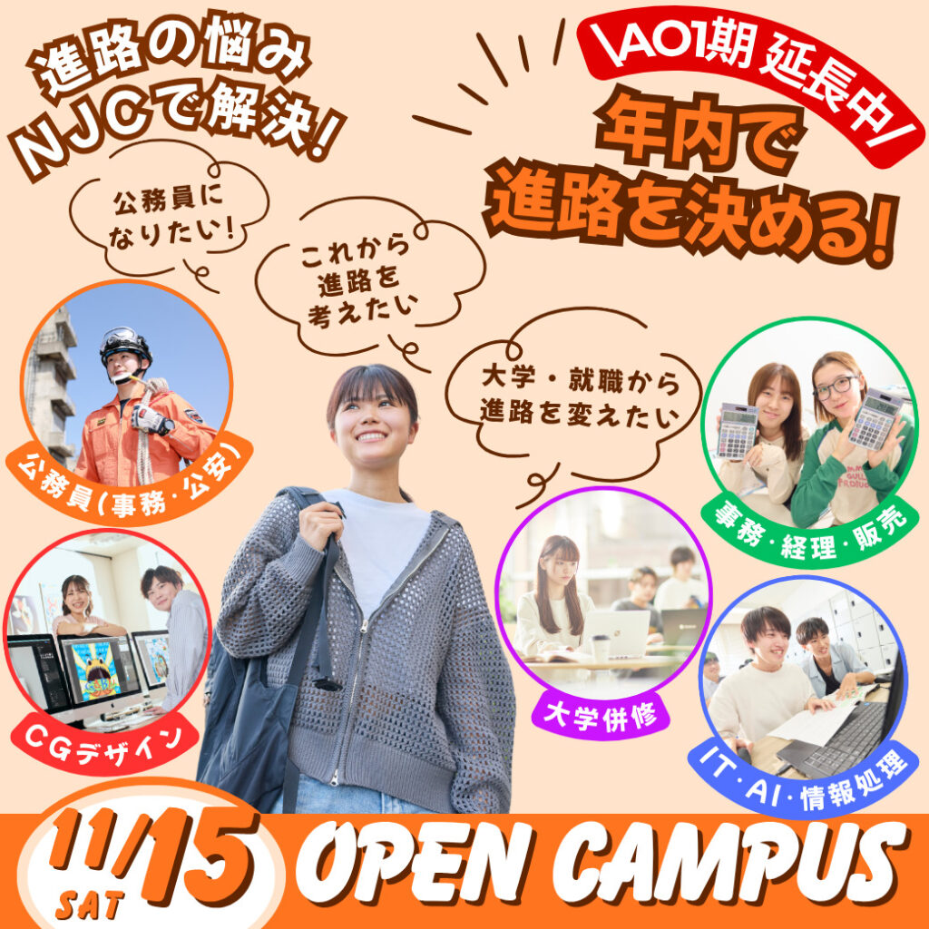 年内で進路を決めるならイマ動こう!11月15日オープンキャンパス!