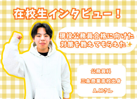 公務員試験に向けた対策が充実していて、分からないところは先生が分かるまで教えてくれるので、自分の実力もついてきていると感じました。