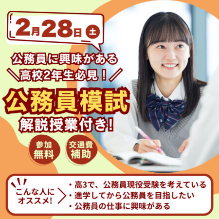 \公務員現役受験を考える高校2年生必見!/2月28日(土)は”公務員模試”に参加しよう!