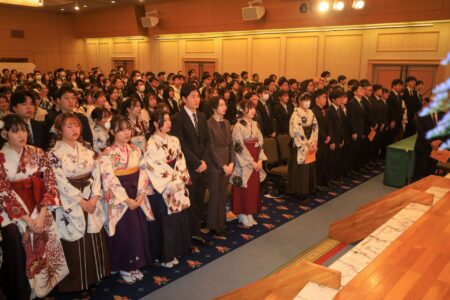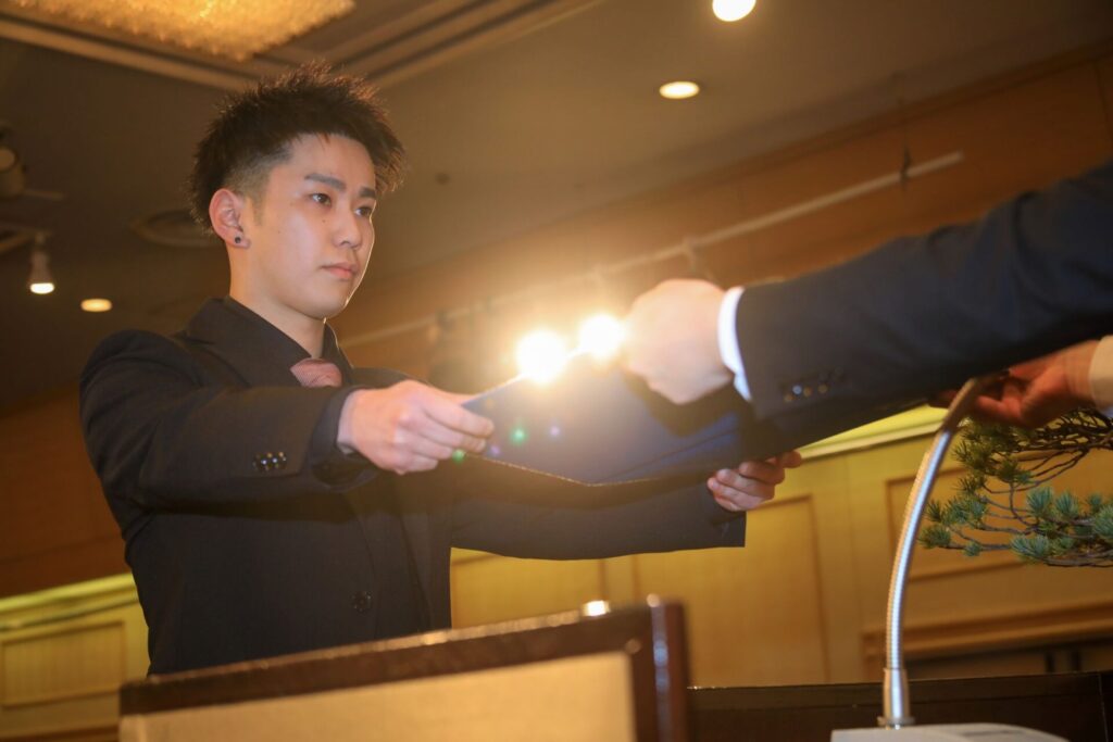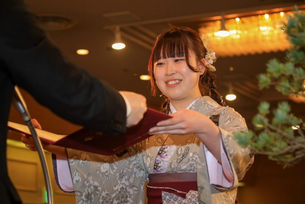 それぞれの学科の代表学生が、卒業証書を受け取りました。