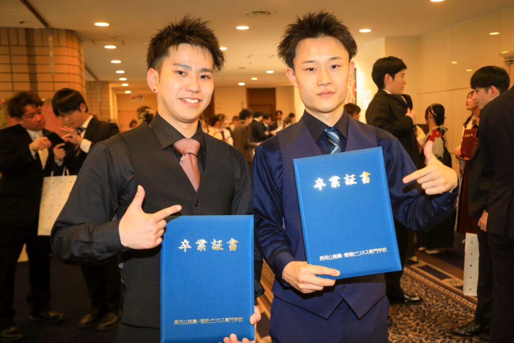 長岡グランドホテルで姉妹校のN-heart長岡こども・医療・介護専門学校と2校合同で卒業式・卒業記念パーティを行いました✨