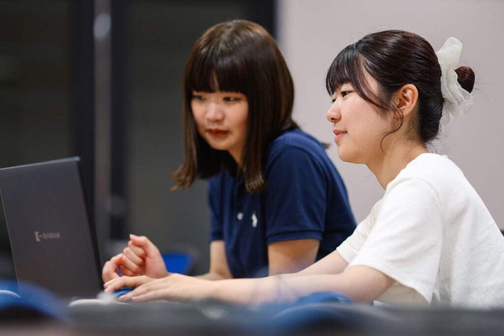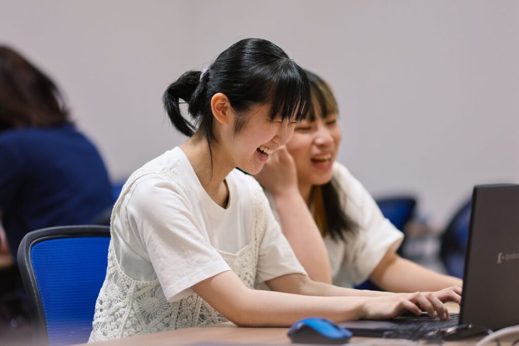 隣の人と相談しながら授業を受けることもできるので、協力しながらスキルも身につけられるのが魅力😝