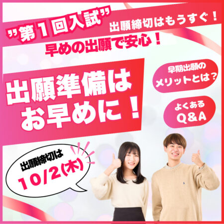 お早目のAOエントリー・面談がオススメです!